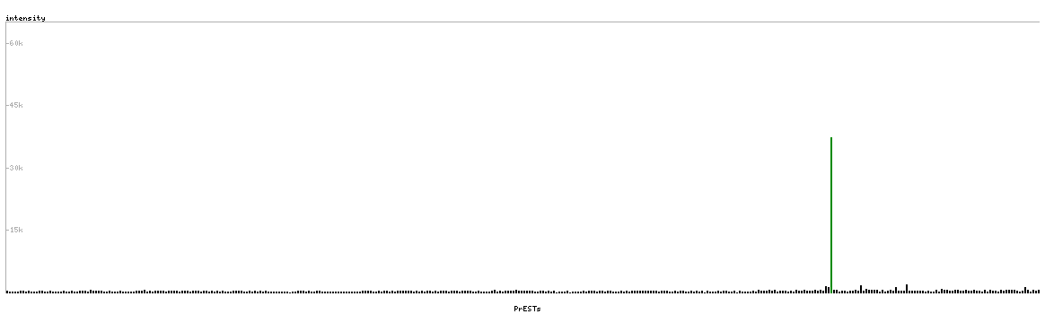 At the top of the view, the position of the antigen (identified by the corresponding HPA identifier) is shown as a green bar. A yellow triangle on the bar indicates a <100% sequence identity to the protein target.