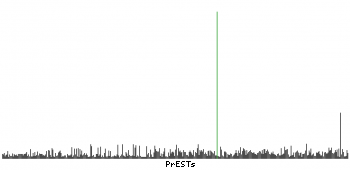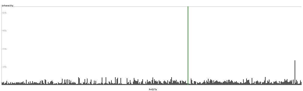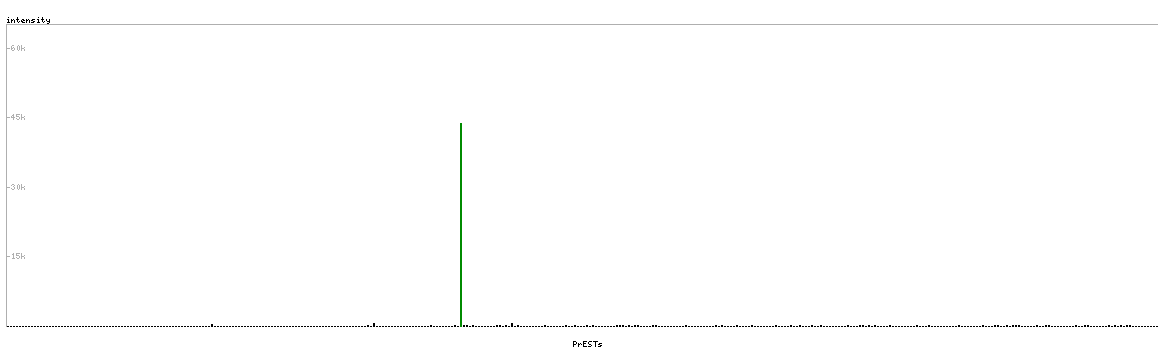 At the top of the view, the position of the antigen (identified by the corresponding HPA identifier) is shown as a green bar. A yellow triangle on the bar indicates a <100% sequence identity to the protein target.