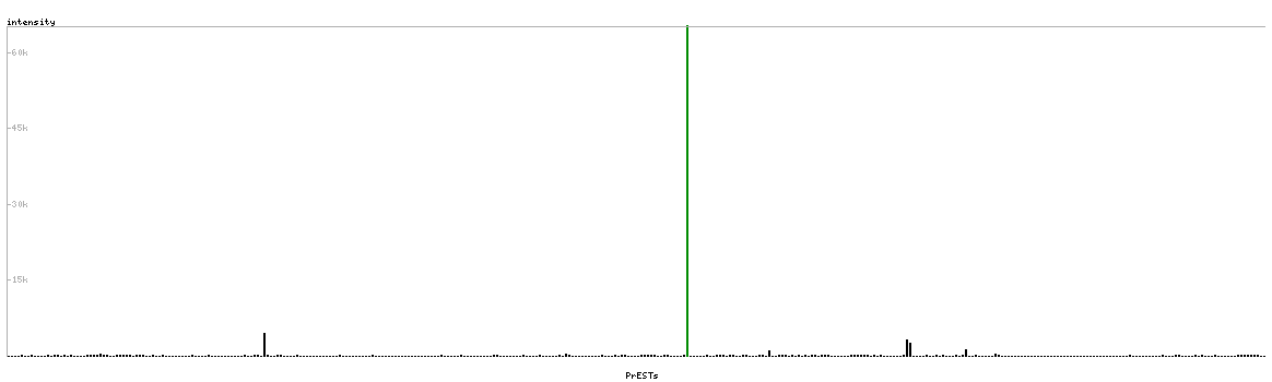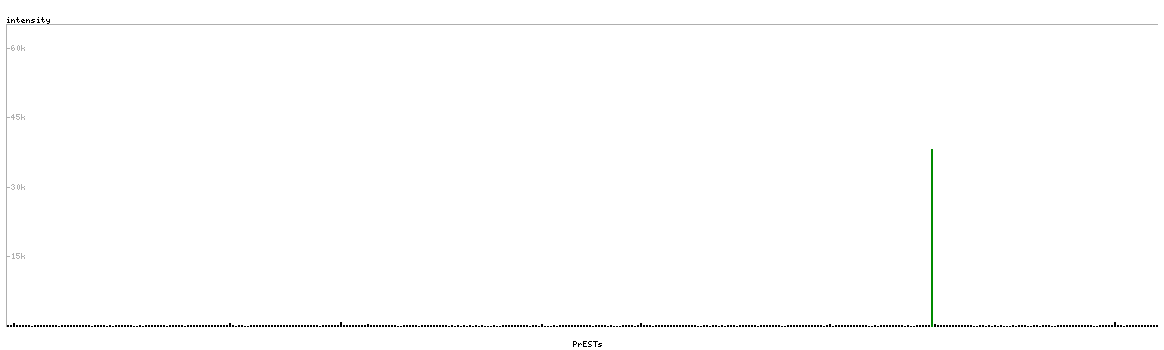 At the top of the view, the position of the antigen (identified by the corresponding HPA identifier) is shown as a green bar. A yellow triangle on the bar indicates a <100% sequence identity to the protein target.