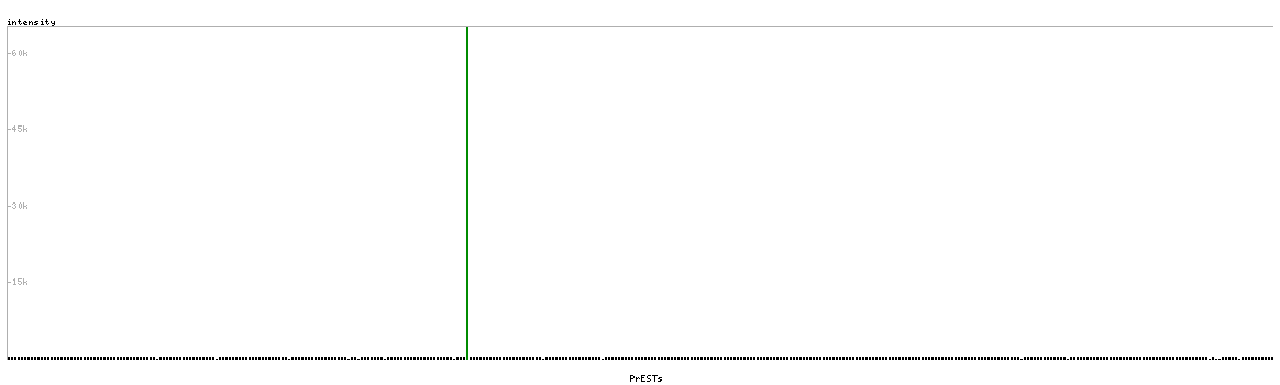 At the top of the view, the position of the antigen (identified by the corresponding HPA identifier) is shown as a green bar. A yellow triangle on the bar indicates a <100% sequence identity to the protein target.
