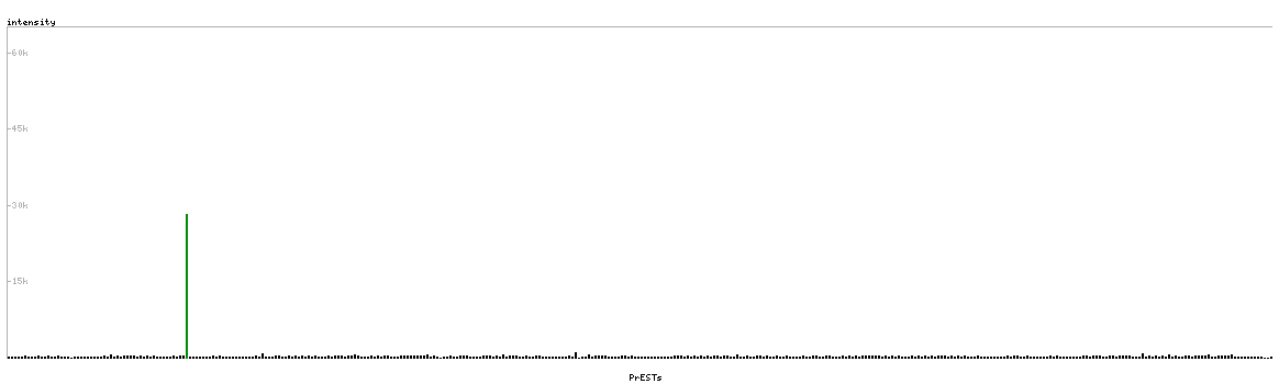 At the top of the view, the position of the antigen (identified by the corresponding HPA identifier) is shown as a green bar. A yellow triangle on the bar indicates a <100% sequence identity to the protein target.