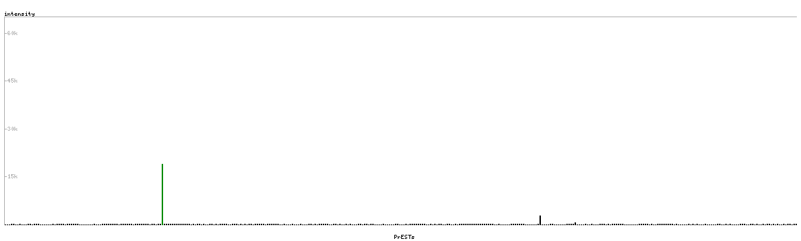 At the top of the view, the position of the antigen (identified by the corresponding HPA identifier) is shown as a green bar. A yellow triangle on the bar indicates a <100% sequence identity to the protein target.