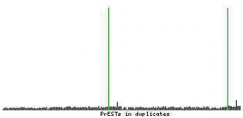 At the top of the view, the position of the antigen (identified by the corresponding HPA identifier) is shown as a green bar. A yellow triangle on the bar indicates a <100% sequence identity to the protein target.