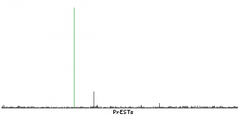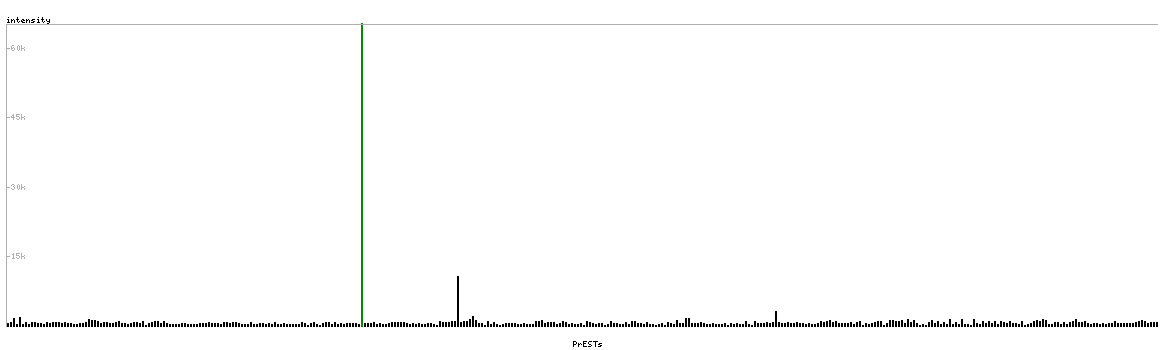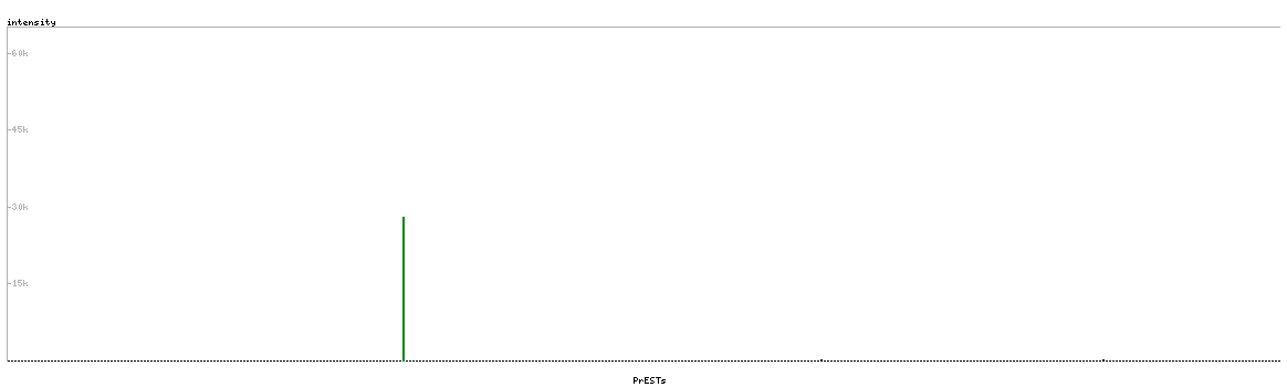 At the top of the view, the position of the antigen (identified by the corresponding HPA identifier) is shown as a green bar. A yellow triangle on the bar indicates a <100% sequence identity to the protein target.