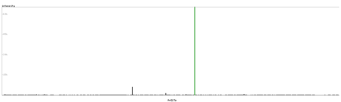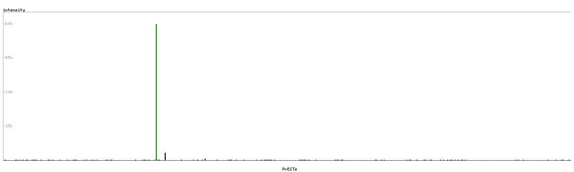 At the top of the view, the position of the antigen (identified by the corresponding HPA identifier) is shown as a green bar. A yellow triangle on the bar indicates a <100% sequence identity to the protein target.