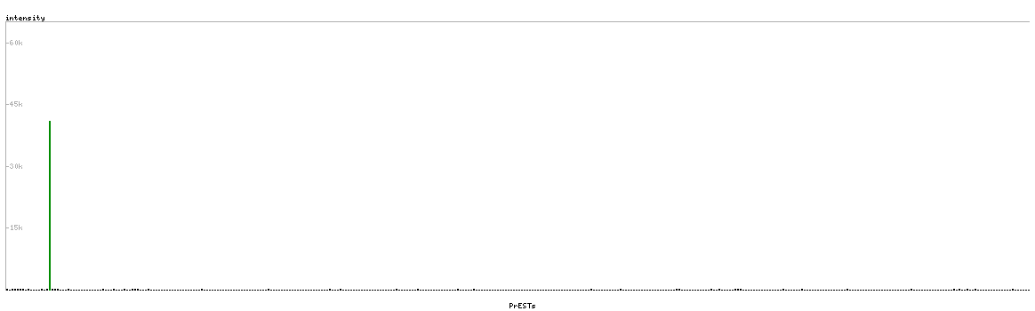At the top of the view, the position of the antigen (identified by the corresponding HPA identifier) is shown as a green bar. A yellow triangle on the bar indicates a <100% sequence identity to the protein target.
