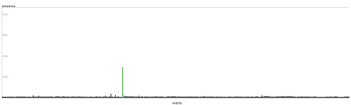 At the top of the view, the position of the antigen (identified by the corresponding HPA identifier) is shown as a green bar. A yellow triangle on the bar indicates a <100% sequence identity to the protein target.