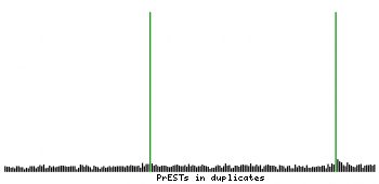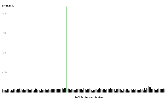 At the top of the view, the position of the antigen (identified by the corresponding HPA identifier) is shown as a green bar. A yellow triangle on the bar indicates a <100% sequence identity to the protein target.
