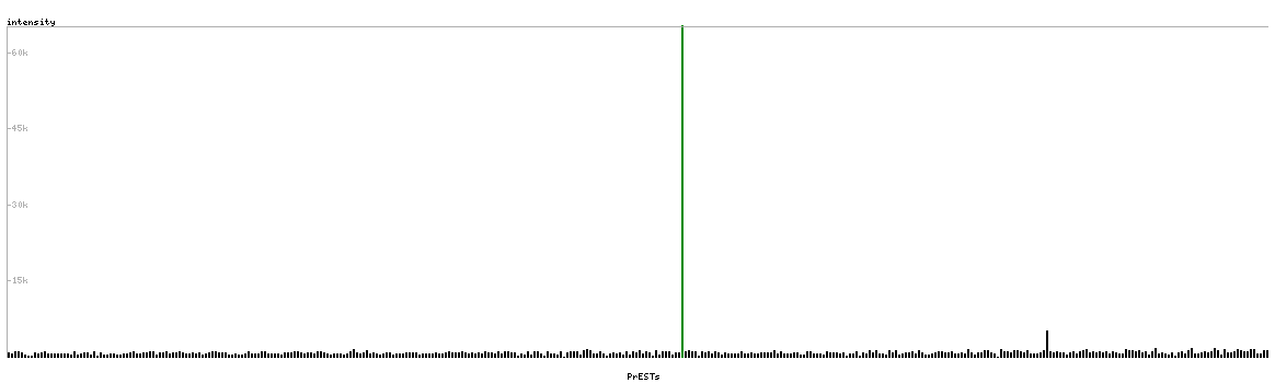 At the top of the view, the position of the antigen (identified by the corresponding HPA identifier) is shown as a green bar. A yellow triangle on the bar indicates a <100% sequence identity to the protein target.