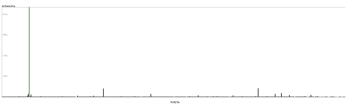 At the top of the view, the position of the antigen (identified by the corresponding HPA identifier) is shown as a green bar. A yellow triangle on the bar indicates a <100% sequence identity to the protein target.