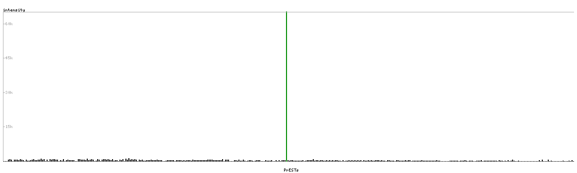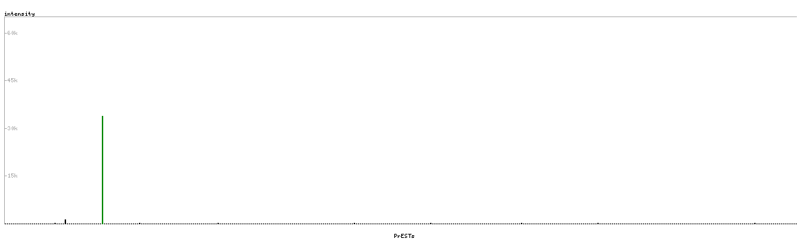 At the top of the view, the position of the antigen (identified by the corresponding HPA identifier) is shown as a green bar. A yellow triangle on the bar indicates a <100% sequence identity to the protein target.