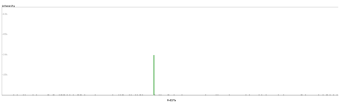 At the top of the view, the position of the antigen (identified by the corresponding HPA identifier) is shown as a green bar. A yellow triangle on the bar indicates a <100% sequence identity to the protein target.