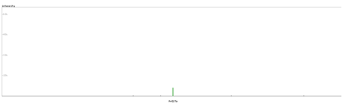 At the top of the view, the position of the antigen (identified by the corresponding HPA identifier) is shown as a green bar. A yellow triangle on the bar indicates a <100% sequence identity to the protein target.