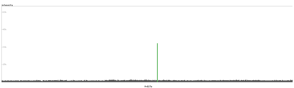 At the top of the view, the position of the antigen (identified by the corresponding HPA identifier) is shown as a green bar. A yellow triangle on the bar indicates a <100% sequence identity to the protein target.