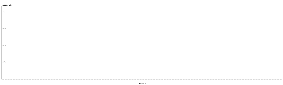At the top of the view, the position of the antigen (identified by the corresponding HPA identifier) is shown as a green bar. A yellow triangle on the bar indicates a <100% sequence identity to the protein target.