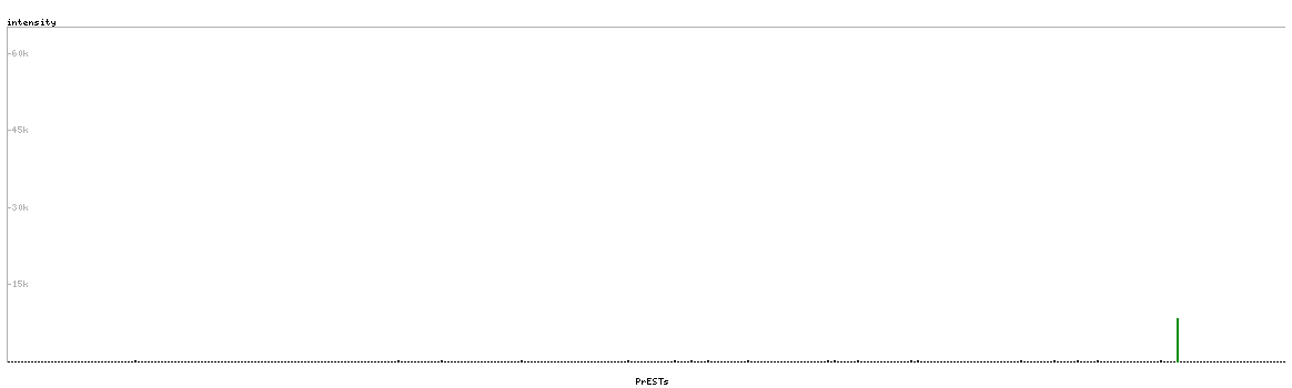 At the top of the view, the position of the antigen (identified by the corresponding HPA identifier) is shown as a green bar. A yellow triangle on the bar indicates a <100% sequence identity to the protein target.