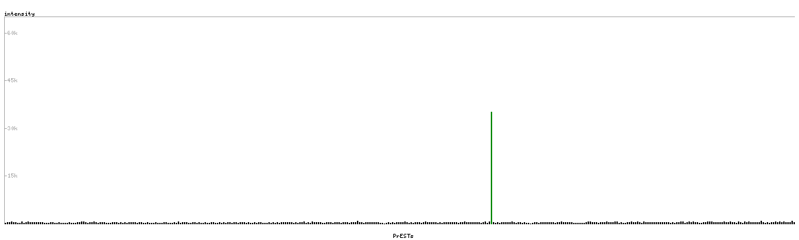 At the top of the view, the position of the antigen (identified by the corresponding HPA identifier) is shown as a green bar. A yellow triangle on the bar indicates a <100% sequence identity to the protein target.
