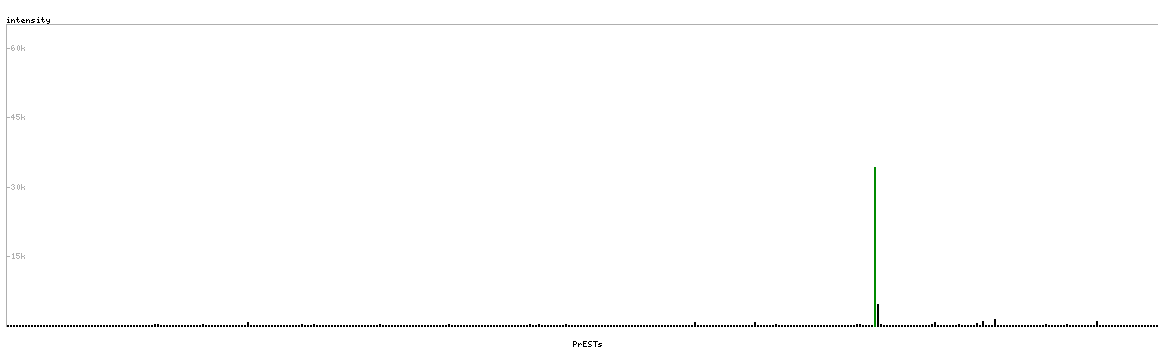 At the top of the view, the position of the antigen (identified by the corresponding HPA identifier) is shown as a green bar. A yellow triangle on the bar indicates a <100% sequence identity to the protein target.