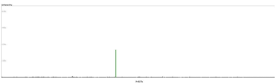 At the top of the view, the position of the antigen (identified by the corresponding HPA identifier) is shown as a green bar. A yellow triangle on the bar indicates a <100% sequence identity to the protein target.