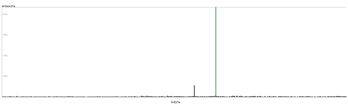 At the top of the view, the position of the antigen (identified by the corresponding HPA identifier) is shown as a green bar. A yellow triangle on the bar indicates a <100% sequence identity to the protein target.