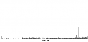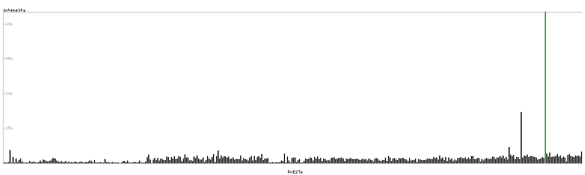 At the top of the view, the position of the antigen (identified by the corresponding HPA identifier) is shown as a green bar. A yellow triangle on the bar indicates a <100% sequence identity to the protein target.