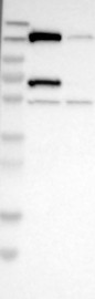 A Western blot analysis is performed on a panel of human tissues and cell lines to evaluate antibody specificity. For antibodies with unreliable result a revalidation using an over-expression lysate is performed.