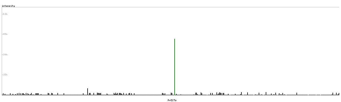 At the top of the view, the position of the antigen (identified by the corresponding HPA identifier) is shown as a green bar. A yellow triangle on the bar indicates a <100% sequence identity to the protein target.