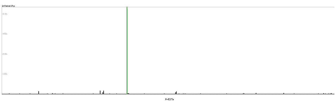 At the top of the view, the position of the antigen (identified by the corresponding HPA identifier) is shown as a green bar. A yellow triangle on the bar indicates a <100% sequence identity to the protein target.
