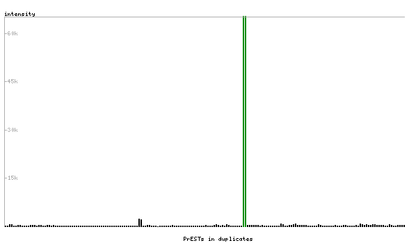 At the top of the view, the position of the antigen (identified by the corresponding HPA identifier) is shown as a green bar. A yellow triangle on the bar indicates a <100% sequence identity to the protein target.