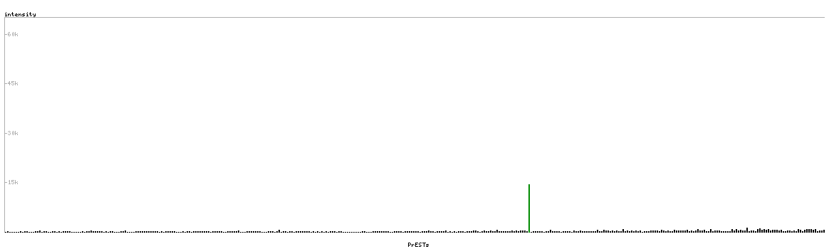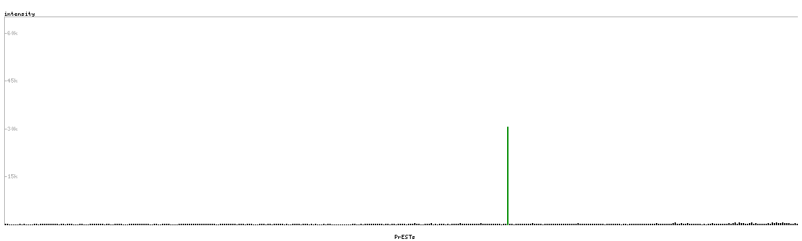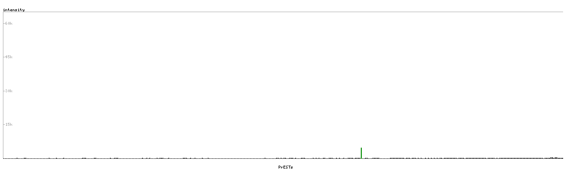 At the top of the view, the position of the antigen (identified by the corresponding HPA identifier) is shown as a green bar. A yellow triangle on the bar indicates a <100% sequence identity to the protein target.