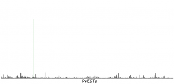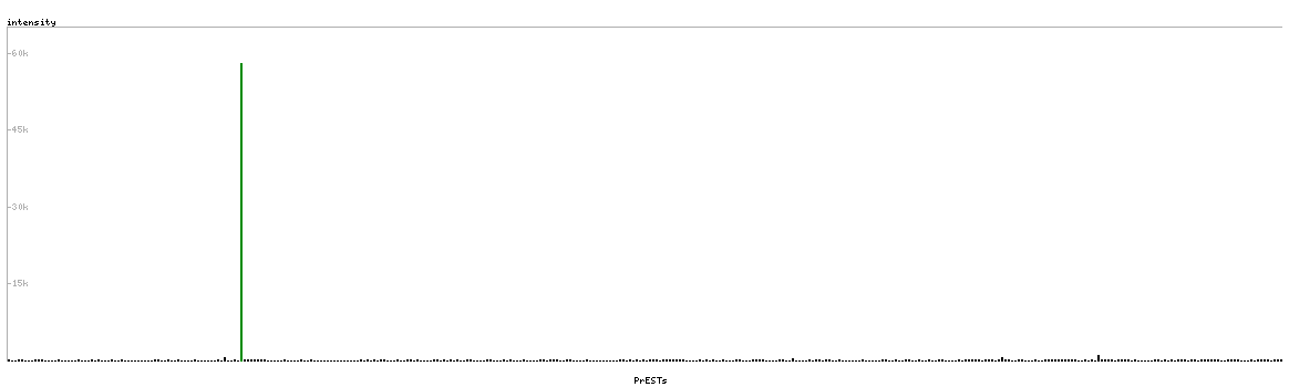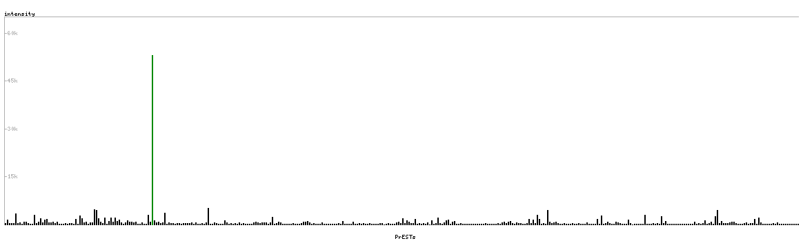 At the top of the view, the position of the antigen (identified by the corresponding HPA identifier) is shown as a green bar. A yellow triangle on the bar indicates a <100% sequence identity to the protein target.