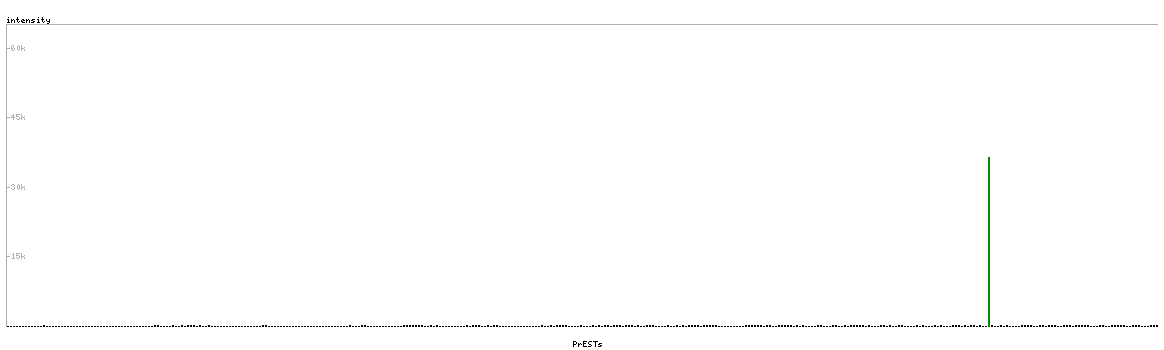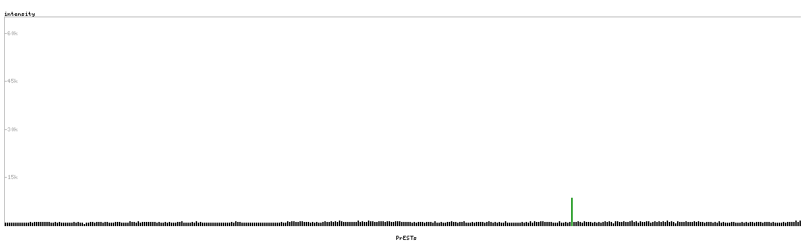 At the top of the view, the position of the antigen (identified by the corresponding HPA identifier) is shown as a green bar. A yellow triangle on the bar indicates a <100% sequence identity to the protein target.