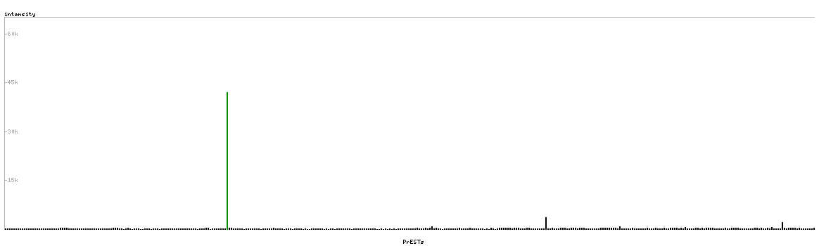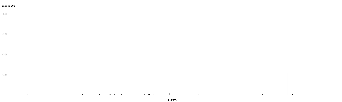 At the top of the view, the position of the antigen (identified by the corresponding HPA identifier) is shown as a green bar. A yellow triangle on the bar indicates a <100% sequence identity to the protein target.