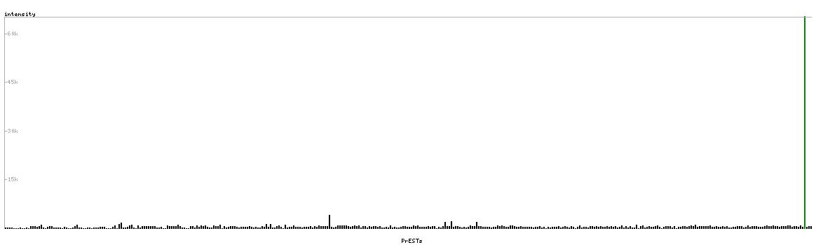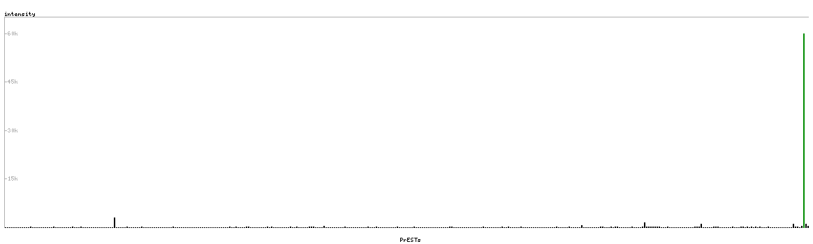 At the top of the view, the position of the antigen (identified by the corresponding HPA identifier) is shown as a green bar. A yellow triangle on the bar indicates a <100% sequence identity to the protein target.