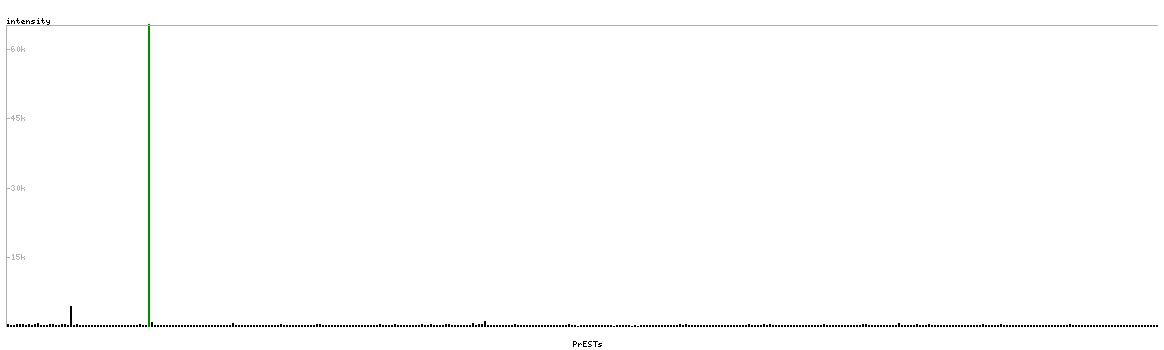 At the top of the view, the position of the antigen (identified by the corresponding HPA identifier) is shown as a green bar. A yellow triangle on the bar indicates a <100% sequence identity to the protein target.