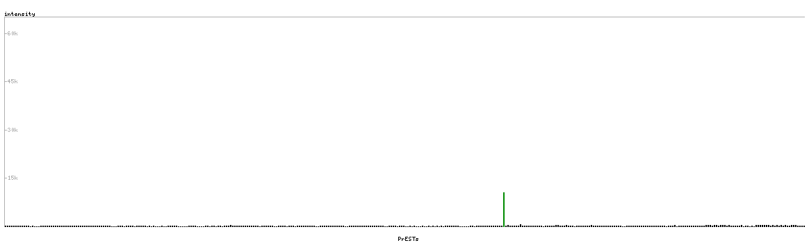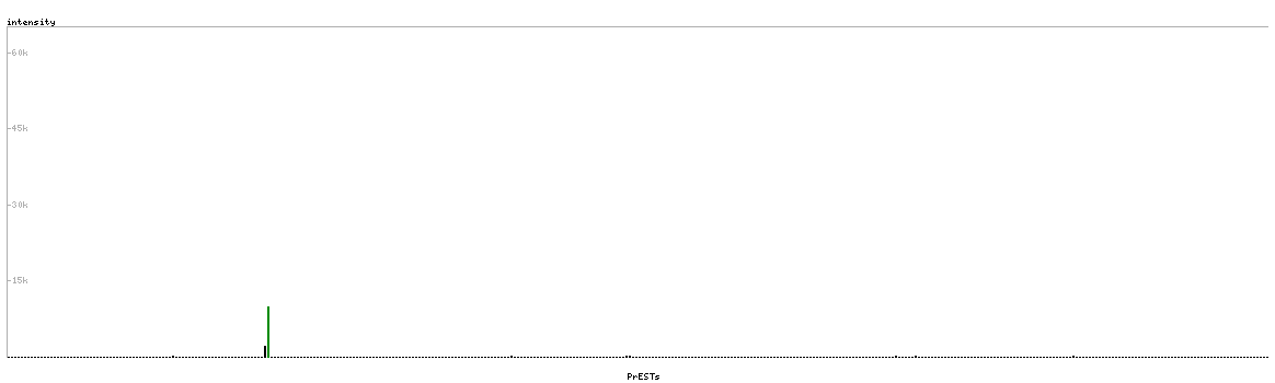 At the top of the view, the position of the antigen (identified by the corresponding HPA identifier) is shown as a green bar. A yellow triangle on the bar indicates a <100% sequence identity to the protein target.