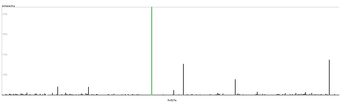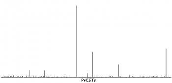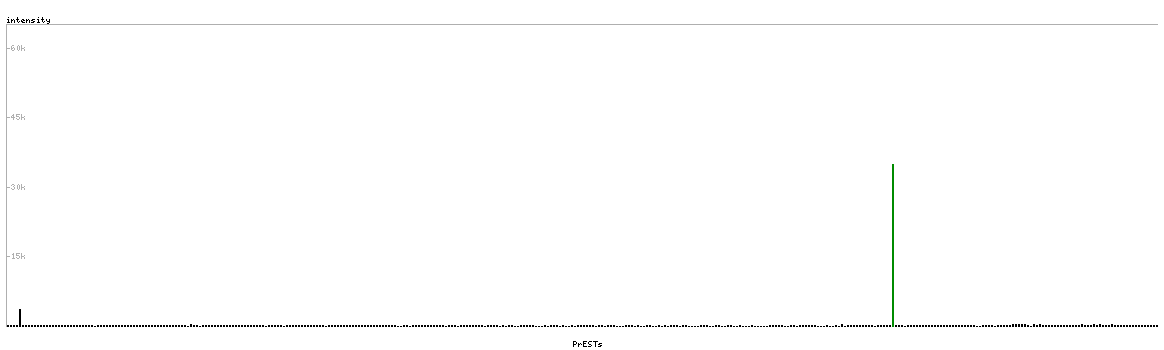 At the top of the view, the position of the antigen (identified by the corresponding HPA identifier) is shown as a green bar. A yellow triangle on the bar indicates a <100% sequence identity to the protein target.