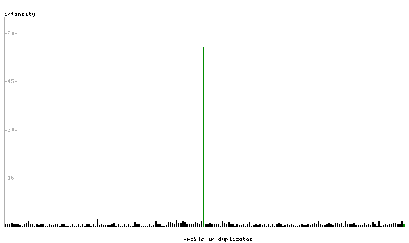 At the top of the view, the position of the antigen (identified by the corresponding HPA identifier) is shown as a green bar. A yellow triangle on the bar indicates a <100% sequence identity to the protein target.