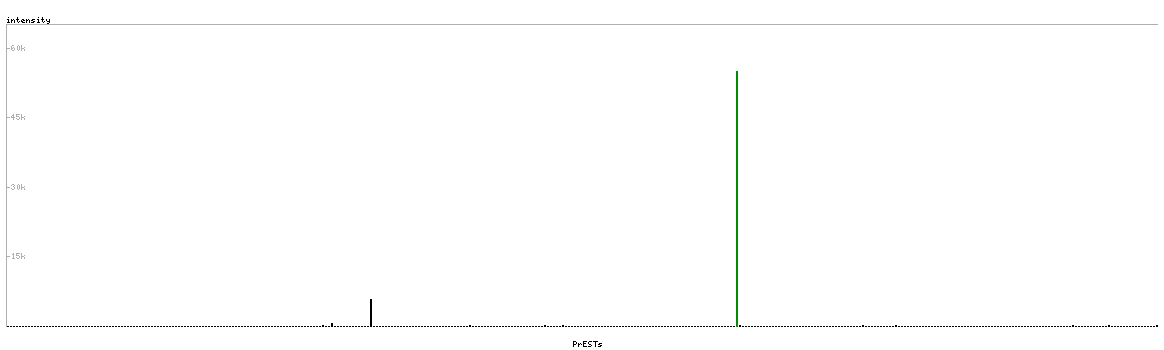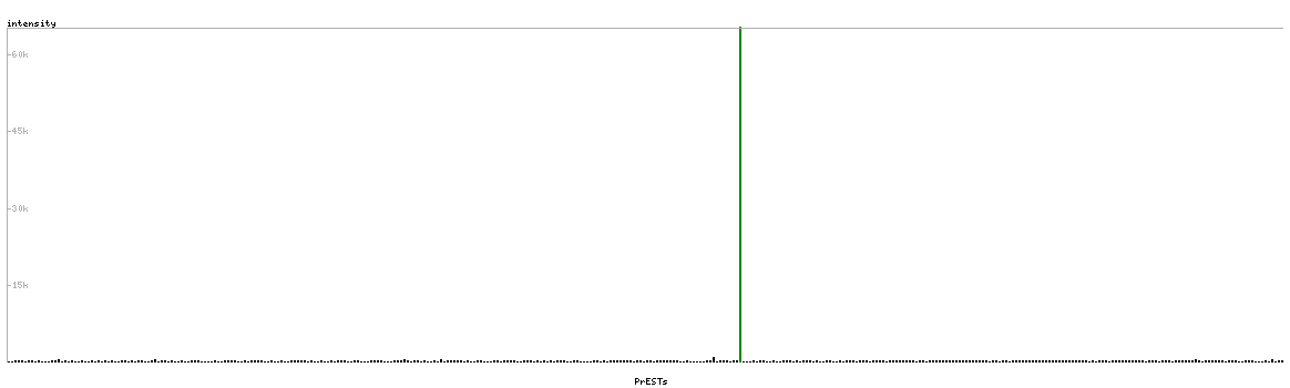 At the top of the view, the position of the antigen (identified by the corresponding HPA identifier) is shown as a green bar. A yellow triangle on the bar indicates a <100% sequence identity to the protein target.