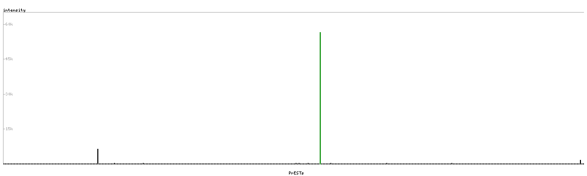 At the top of the view, the position of the antigen (identified by the corresponding HPA identifier) is shown as a green bar. A yellow triangle on the bar indicates a <100% sequence identity to the protein target.