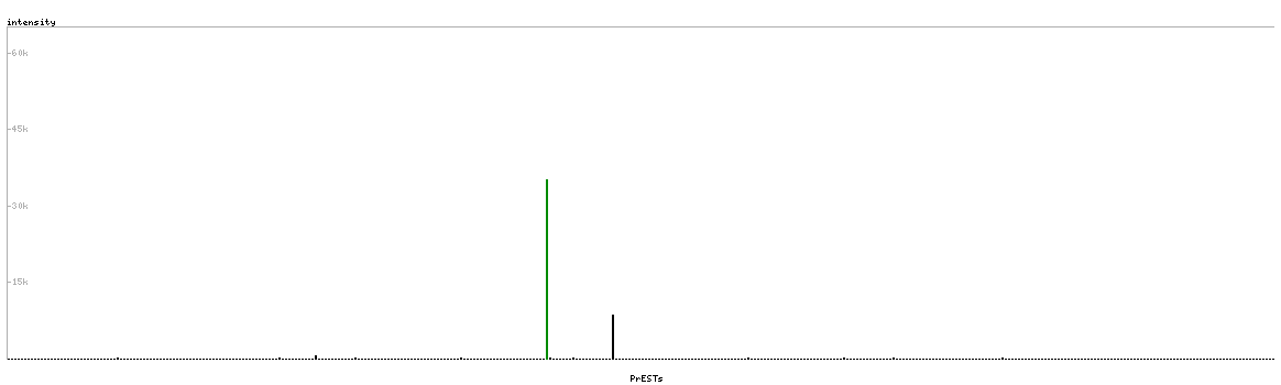 At the top of the view, the position of the antigen (identified by the corresponding HPA identifier) is shown as a green bar. A yellow triangle on the bar indicates a <100% sequence identity to the protein target.