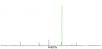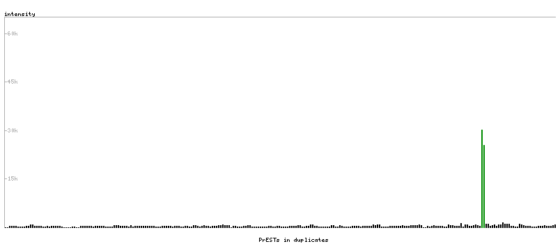 At the top of the view, the position of the antigen (identified by the corresponding HPA identifier) is shown as a green bar. A yellow triangle on the bar indicates a <100% sequence identity to the protein target.