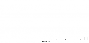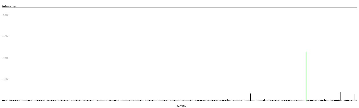 At the top of the view, the position of the antigen (identified by the corresponding HPA identifier) is shown as a green bar. A yellow triangle on the bar indicates a <100% sequence identity to the protein target.