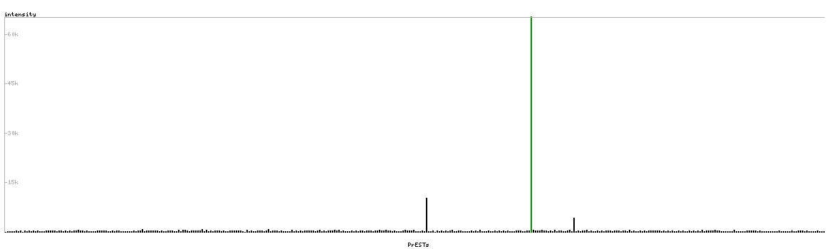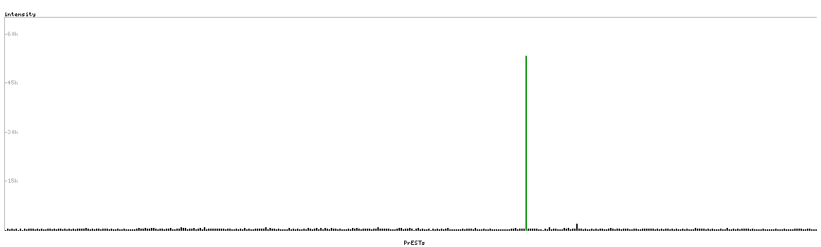 At the top of the view, the position of the antigen (identified by the corresponding HPA identifier) is shown as a green bar. A yellow triangle on the bar indicates a <100% sequence identity to the protein target.