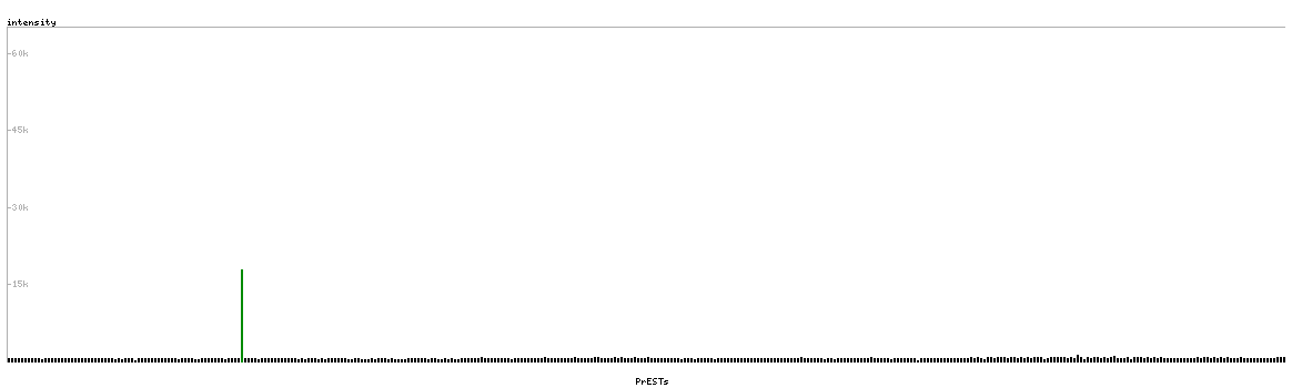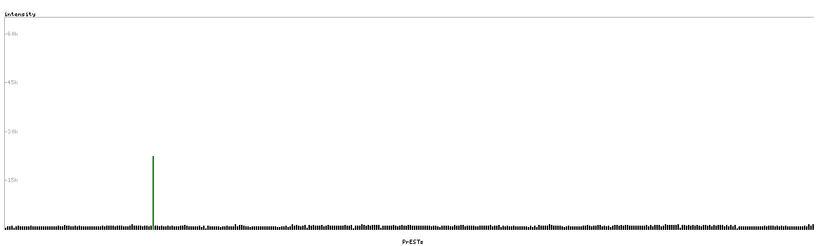 At the top of the view, the position of the antigen (identified by the corresponding HPA identifier) is shown as a green bar. A yellow triangle on the bar indicates a <100% sequence identity to the protein target.