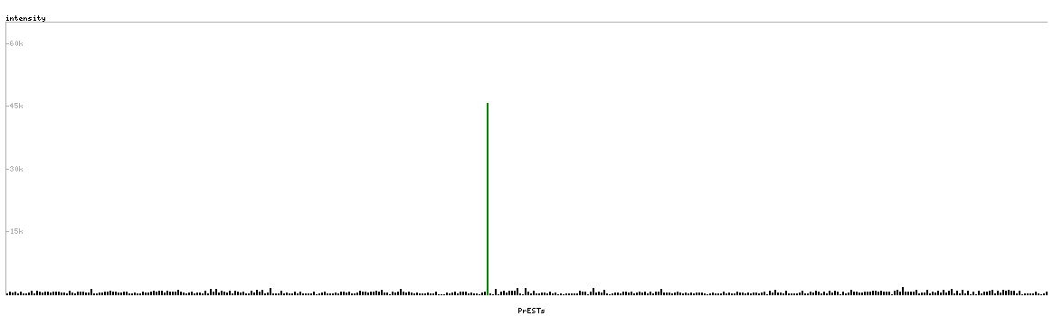 At the top of the view, the position of the antigen (identified by the corresponding HPA identifier) is shown as a green bar. A yellow triangle on the bar indicates a <100% sequence identity to the protein target.
