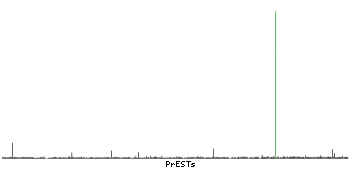 At the top of the view, the position of the antigen (identified by the corresponding HPA identifier) is shown as a green bar. A yellow triangle on the bar indicates a <100% sequence identity to the protein target.