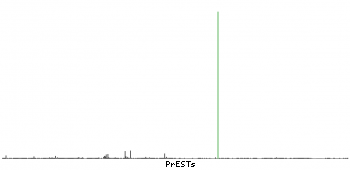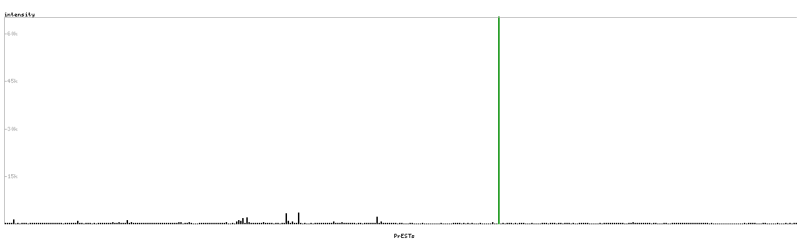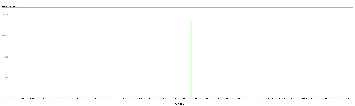 At the top of the view, the position of the antigen (identified by the corresponding HPA identifier) is shown as a green bar. A yellow triangle on the bar indicates a <100% sequence identity to the protein target.