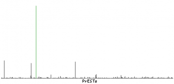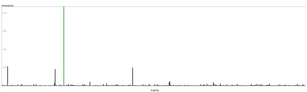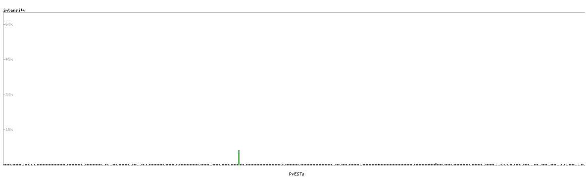 At the top of the view, the position of the antigen (identified by the corresponding HPA identifier) is shown as a green bar. A yellow triangle on the bar indicates a <100% sequence identity to the protein target.