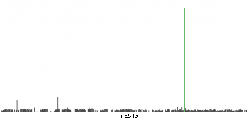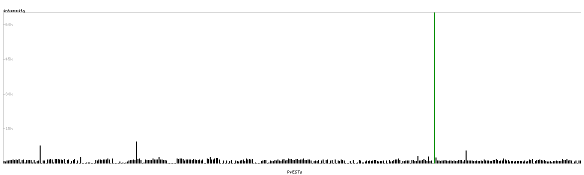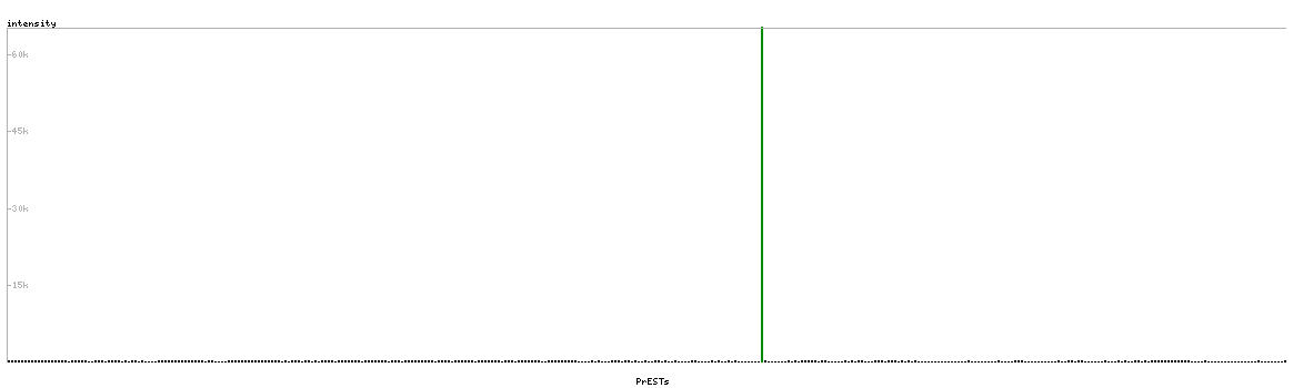At the top of the view, the position of the antigen (identified by the corresponding HPA identifier) is shown as a green bar. A yellow triangle on the bar indicates a <100% sequence identity to the protein target.